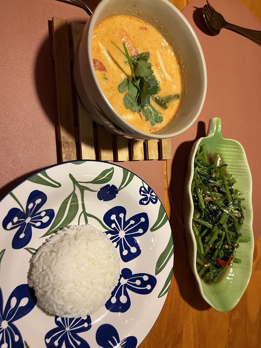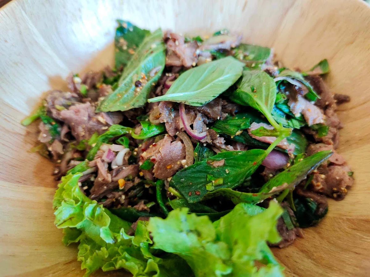 True Thai classic. Food arrived surprisingly fast, even when the place was packed. Staff speaks English and is open to special requests. Many options for vegetarian and vegan. Portions are giant!! Very Thai feeling in the place (all bamboo furniture) & beautiful ocean view. It’s been a delightful experience really. Food was mildly spiced, not so spicy and greasy like many Thai places tend to. I liked it. I Came twice and enjoyed it both times! Thanks so much :-)